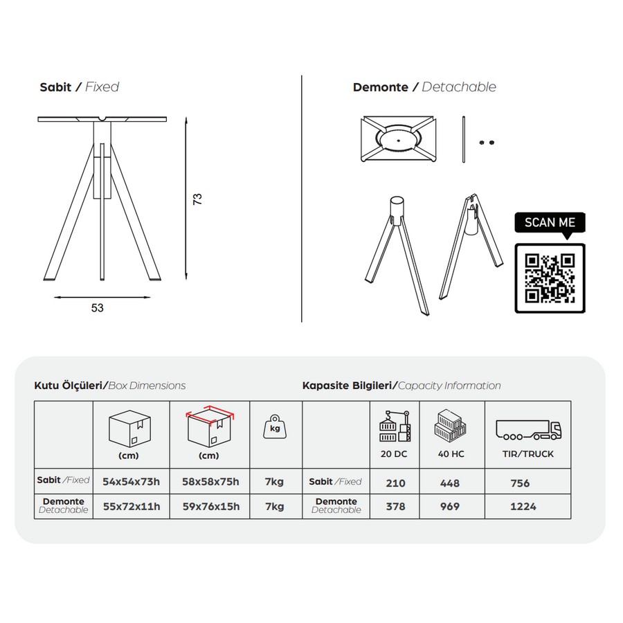 Yükseklik : 73 cm